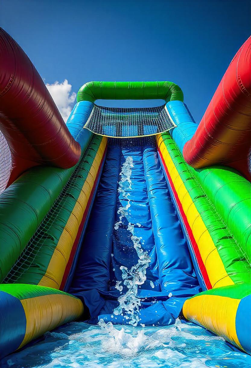 A 20 foot high 3 person water slide, water running down the slide ensures high speed and maximum excitement.